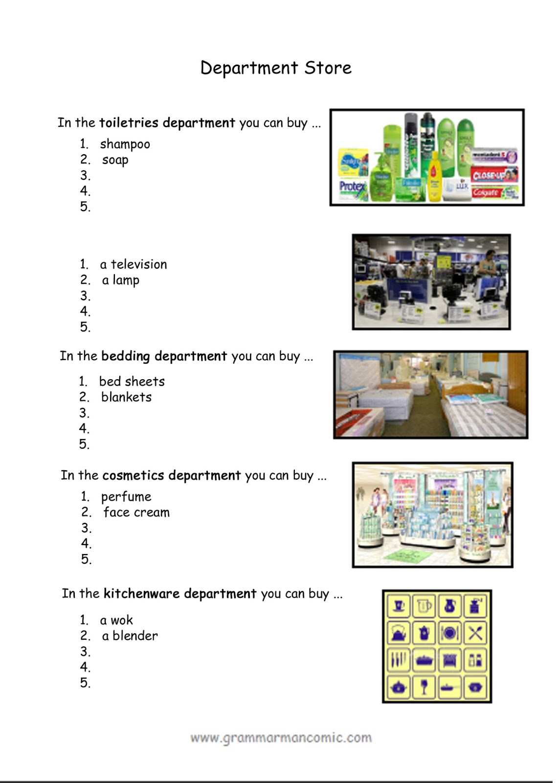 Have you ever been to a department store? Find some information about it and complete this research sheet: